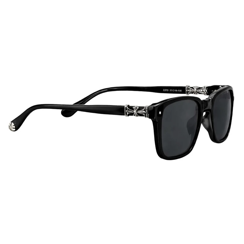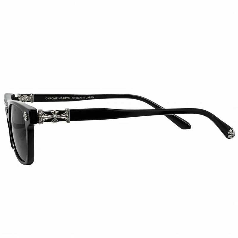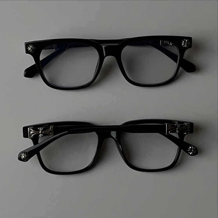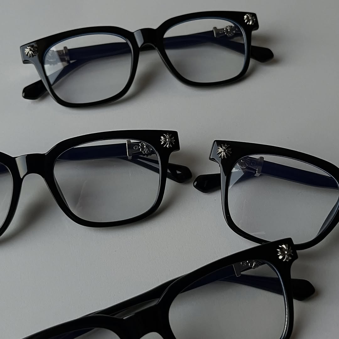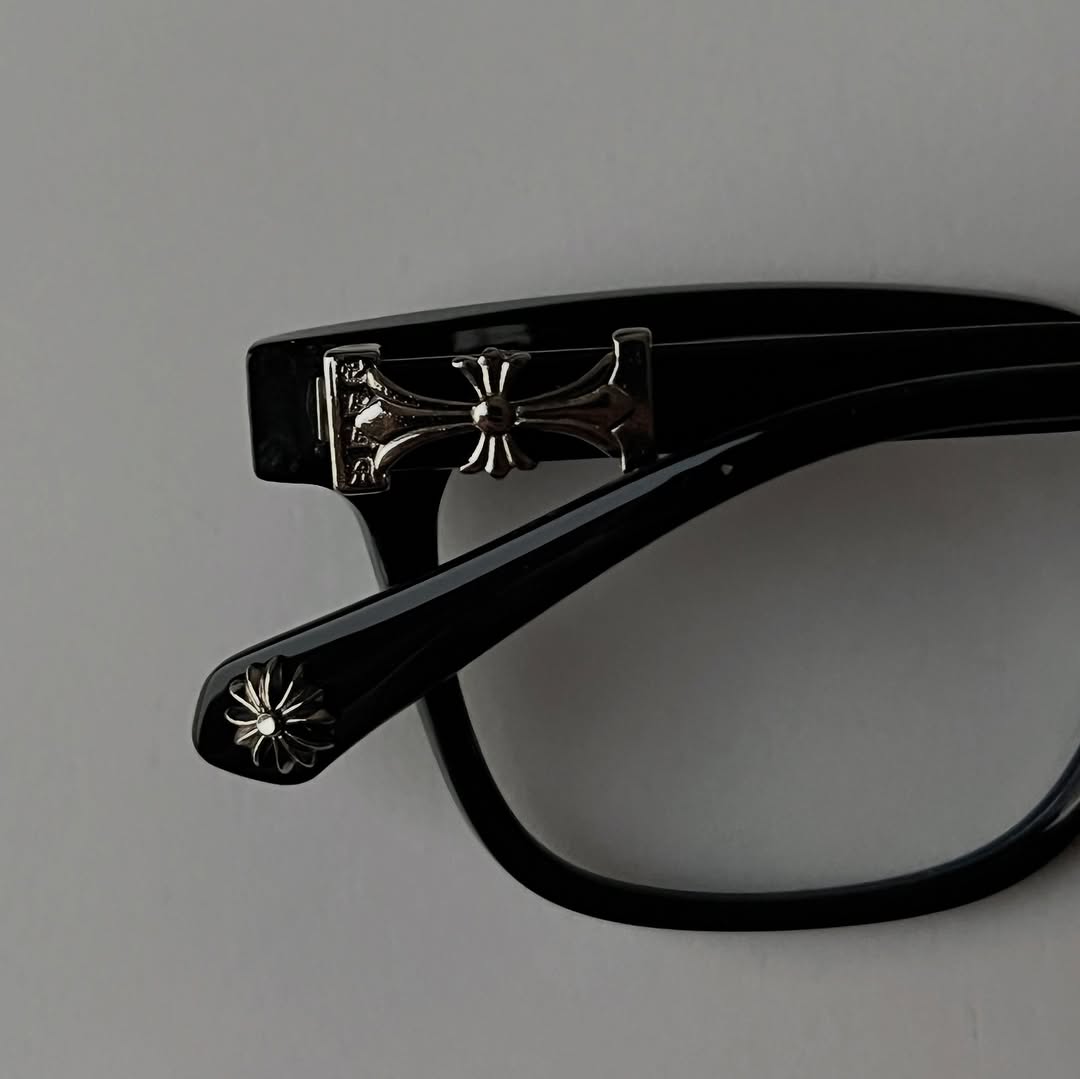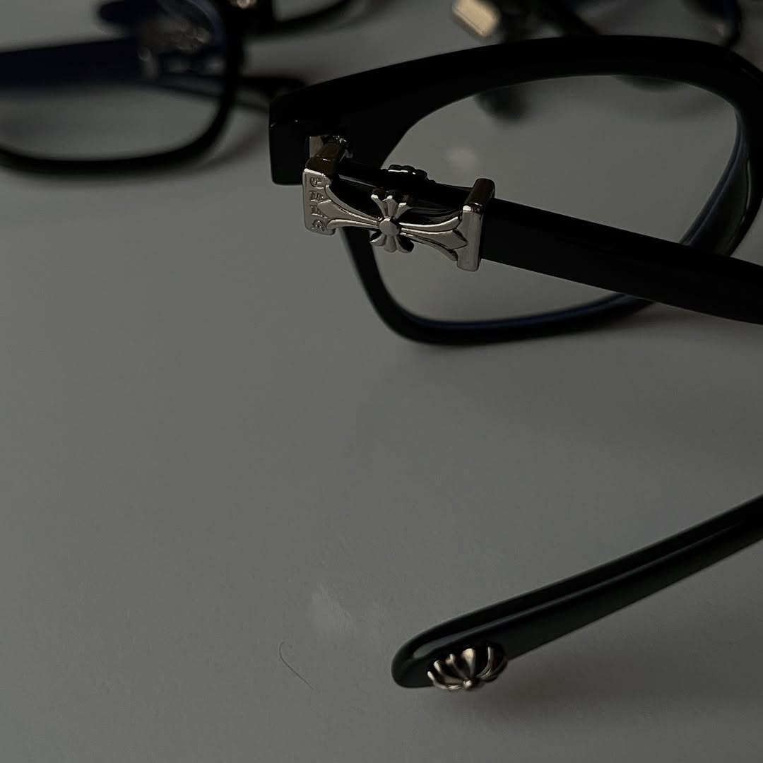 - جزئیات تزئینی: دستهها و لولاهای این عینکها معمولاً دارای طرحهای نمادین کروم هارتز مانند طرحهای گوتیک، خنجر (Dagger) یا صلیبهای نقرهای هستند که با ظرافت حکاکی شدهاند.